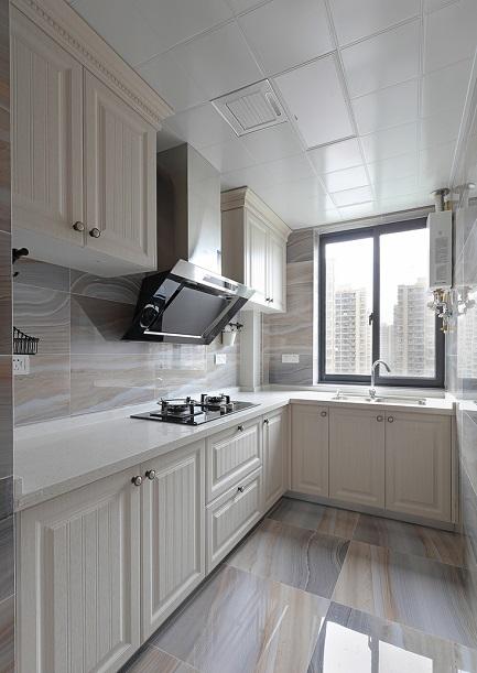 3、灶台打造与瓷砖购买。前期水电工作都由设计师设计好之后,就需要请工人打造灶台,铺设瓷砖了。灶台台面材料的选择最好是人造石料,瓷砖要选择防滑的材料,颜色以冷色调为主。