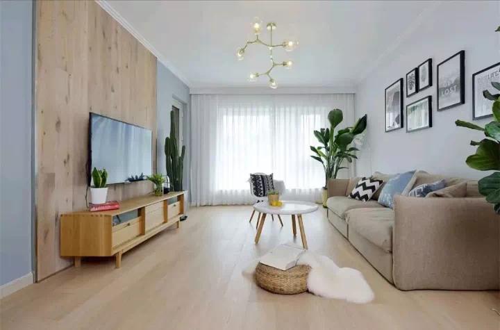 客厅简单装修可以将阳台和客厅打通,扩大了客厅的使用空间,同时采光更加充分。采用原木色家具搭配,有种亲近自然的感觉。
