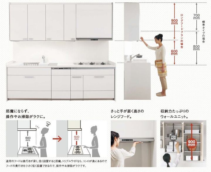③橱柜:吊柜、地柜、台面三个部分的高度关系,使用者和地柜的高度、使用者和吊柜的高度、吊柜和地柜的高度,三个高度决定了下厨的体验。