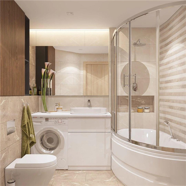 因为卫生间的空间比较小,浴缸肯定是不能装的。为了让整个浴室看上去更美观,选择瓷砖要选择简约一些的。不能为了好看就选择五颜六色的瓷砖,这样会让整个空间看起来很挤迫。