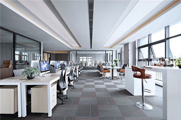 目前,行业内提倡节能环保。公司在装修时,尽量选择天然环保、可重复使用的材料,绿色天然材料对身体危害小。写字楼装修设计中不同的空间区域使用的装饰材料不同。吊顶方面以石膏板和矿棉板、格栅板配合使用。墙面材料上,壁纸和壁布、乳胶漆多使用在总经理办公室和会议室、公共区域等空间。穿孔吸音板则使用在特殊工作间。