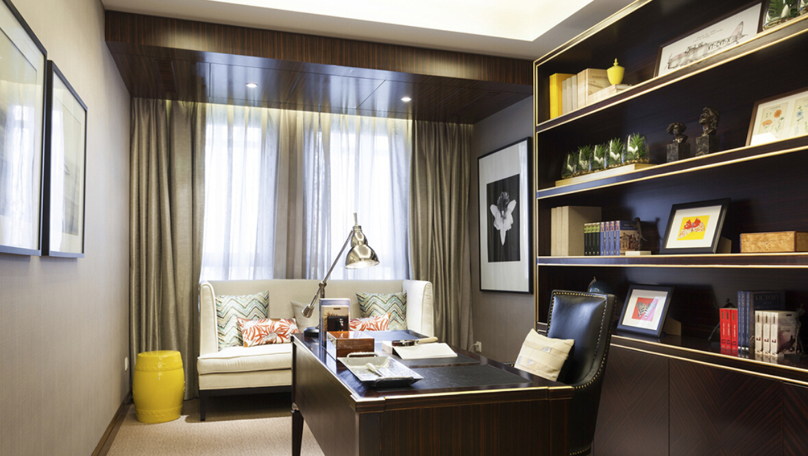 书房作为整个屋子里书香气最重的地方,当然也不能少了氛围营造。最常见的是用工艺品、绿植或图画,点缀书房,以表现出雅致、清幽的感觉,让人一进书房就想学习。