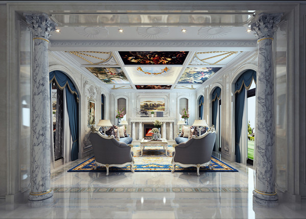 若是想要设计法式风格的别墅,那么在装修之前就需要确定好,然后将室内的布局尽可能的设计成轴对称。这样装修出来的新房才能散发出法式风格中的恢宏气势,让整个室内充满富贵、奢华的气息。