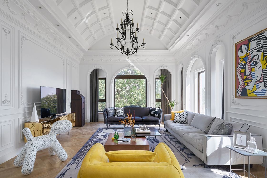 二是效法贵族风格,会有很多宫廷设计元素,高贵典雅,比如法国风布艺、法式古典家具