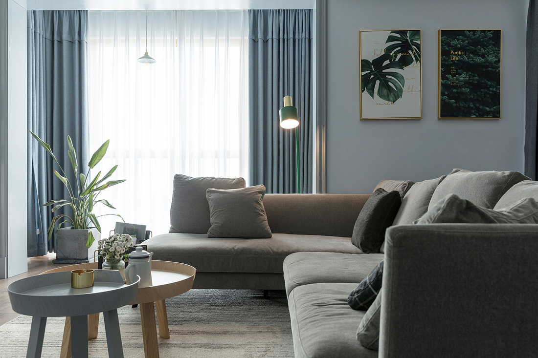 窗帘的垂感和布料材质有关,比如绒布、雪尼尔布料比较重,相对来说,比较有垂感。