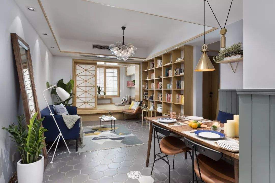 书架墙的位置,完全可以根据个人喜好来,喜欢窝在沙发看书,就放在沙发后侧,动线更短;如果是客餐厅一体,喜欢在餐桌上正襟危坐地读书,也可以把书架墙放在餐厅。