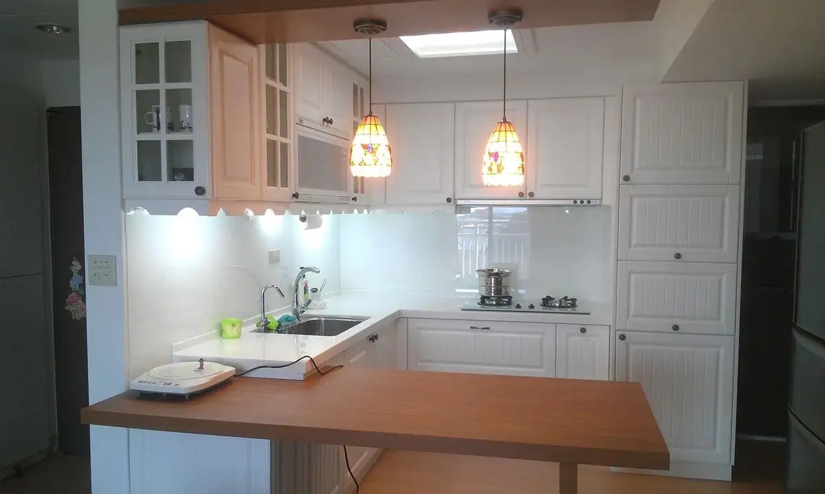 3、水槽放在靠窗处,切菜的地方要留大,插座要预留够,水槽下最好留一个厨热宝或者净水器插座,台面上至少预留三个插座,吊柜要充足,地柜要多做拉篮,得安排燃气热水器的位置。