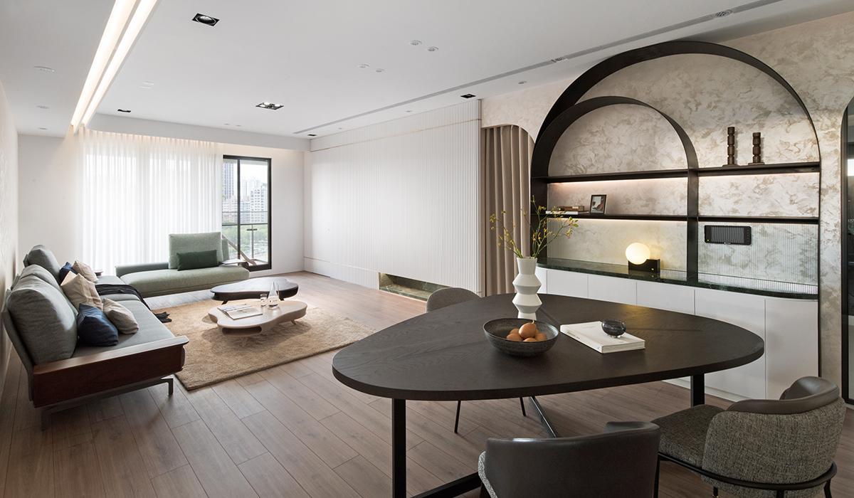 3、木饰面:木饰面比较适用于现代简约风格或者轻奢等装修风格,这种木质感的墙面是装在墙上,提升空间的风格和档次感。