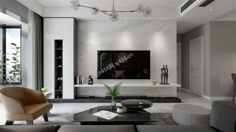 88㎡二居室北欧风格客厅电视墙装修效果图