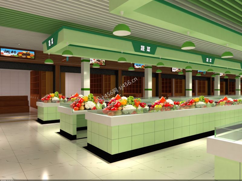 设计理念: 传统菜市场设计中主要有三个功能性用房:营业区、管理服务用房以及辅助用房。除了缺少店铺经营的商品种类之外,最为主要的问题还是菜市场的环境质量较差。经营过程中产生了大量的垃圾污染着菜市场,例如水产区与家禽区的污水,蔬菜区的烂菜叶。但是并不是所有的区域都有污染,例如水果区和杂货区几乎对菜市场不造成污染现根据传统菜市场的六大经营分区的经营特点,将其分类合并成为三个大区域:第一区域为人口区,其中包括几乎没有污水污染和异味污染的杂货区和水果区;第二区域为日常菜肉区,包括购买频率很高,但是有稍微轻度的污水污染和异味污染的蔬菜区和肉类区;第三区域为鱼禽区,包括购买频率相对较低的水产区和禽类区,这二个区域也是市场中污染最重的分区。为了进一步控制生产经营过程中的污染,在菜市场设计中,可以在第三区域中增设一个屠宰区,专门用于水产和禽类的加工,集中控制加工过程中的污染。常菜肉区设置在菜市场的中间区域,以满足其高购买频率。而鱼禽区则只能设置在离市场的入入口最远的区域,通知要避免人口区与鱼禽区直接连接。在多边组合型平面中,可以采用涡轮式布局。同样将水果区和杂货区设置在每个入口处,中间以肉菜区过渡,市场的中心区域为鱼禽区。同时在鱼禽专门设置通风、下水以及垃圾回收系统控制其带来的污染。 传统菜市场设计中主要有三个功能性用房:营业区、管理服务用房以及辅助用房。除了缺少店铺经营的商品种类之外,最为主要的问题还是菜市场的环境质量较差。经营过程中产生了大量的垃圾污染着菜市场,例如水产区与家禽区的污水,蔬菜区的烂菜叶。但是并不是所有的区域都有污染,例如水果区和杂货区几乎对菜市场不造成污染现根据传统菜市场的六大经营分区的经营特点,将其分类合并成为三个大区域:第一区域为人口区,其中包括几乎没有污水污染和异味污染的杂货区和水果区;第二区域为日常菜肉区,包括购买频率很高,但是有稍微轻度的污水污染和异味污染的蔬菜区和肉类区;第三区域为鱼禽区,包括购买频率相对较低的水产区和禽类区,这二个区域也是市场中污染最重的分区。为了进一步控制生产经营过程中的污染,在菜市场设计中,可以在第三区域中增设一个屠宰区,专门用于水产和禽类的加工,集中控制加工过程中的污染。常菜肉区设置在菜市场的中间区域,以满足其高购买频率。而鱼禽区则只能设置在离市场的入入口最远的区域,通知要避免人口区与鱼禽区直接连接。在多边组合型平面中,可以采用涡轮式布局。同样将水果区和杂货区设置在每个入口处,中间以肉菜区过渡,市场的中心区域为鱼禽区。同时在鱼禽专门设置通风、下水以及垃圾回收系统控制其带来的污染。