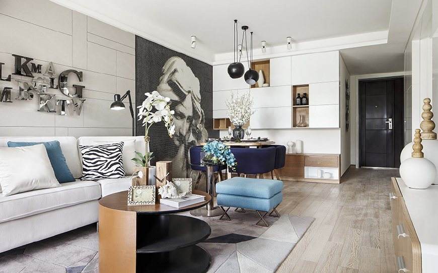 客厅屋顶的天花板,高高在上,对于住宅风水来说,它是天的象征,因而相当重要。现代住宅普层高都在2.8米左右,如果屋顶再采用假天花来装饰,设计稍有不当,便会显得相当累一,有天塌下来的强烈压迫感,居者会压力过大。