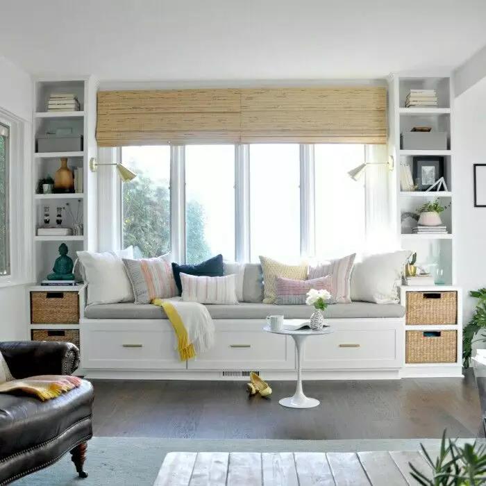 3、综合前面两个方法,将飘窗底部和侧面的墙壁一起围住做成一个收纳区域。
