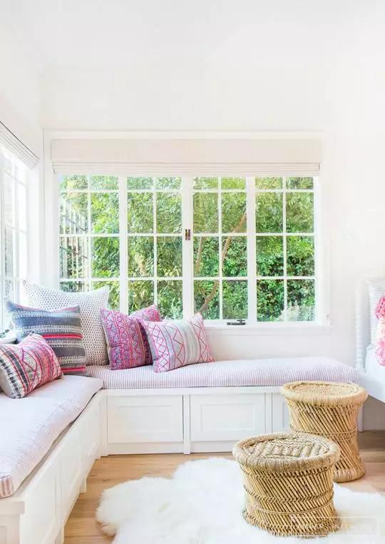 将飘窗位置布置在客厅区域,既可以让客厅更加美观还可以充当沙发!