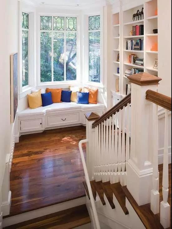 2、利用飘窗旁边的空余墙壁打造几个垂直收纳的壁柜。