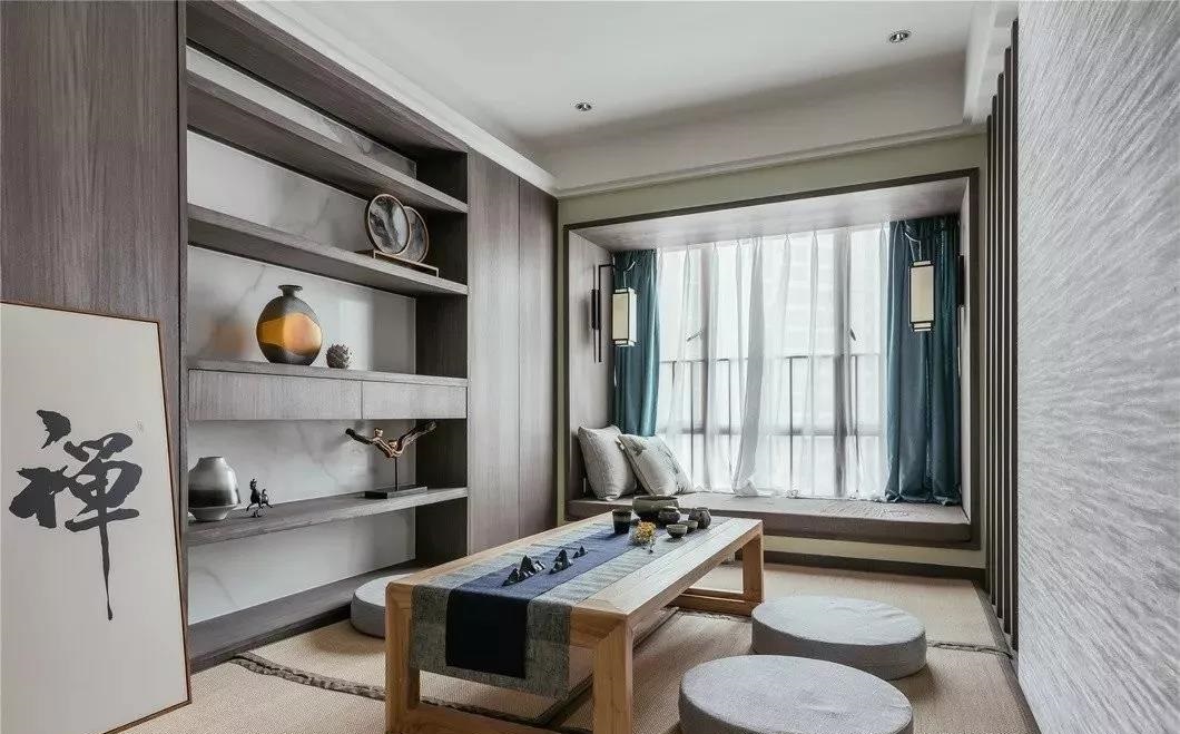 日式风格空间造型极为简洁、家具陈设以茶几为中心,墙面上使用木质构件作方格几何形状与细方格木推拉门、窗相呼应,空间气氛朴素、文雅柔和。一般不多加繁琐的装饰,更重视实际的功能。