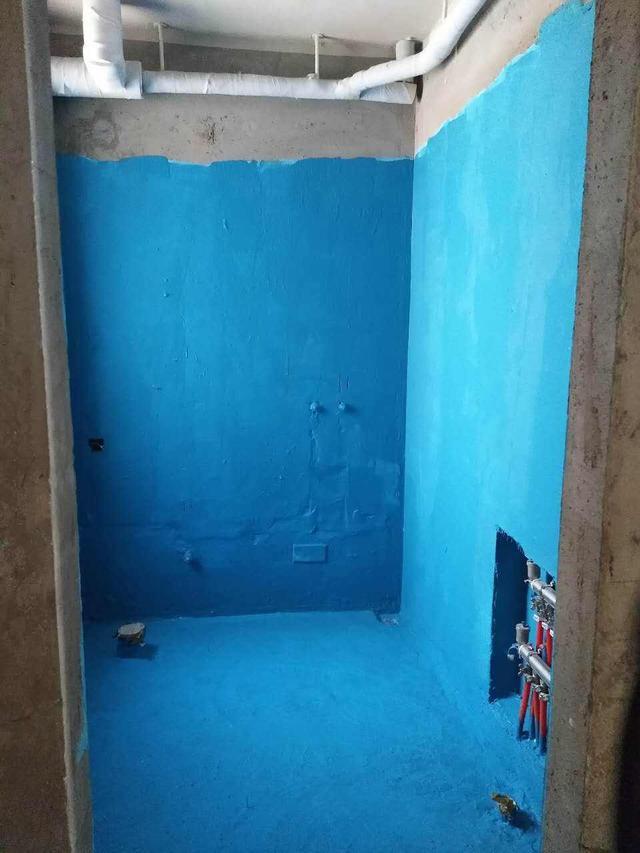 对于干区来说墙面是不会溅到水渍的,所以像这类区域我们只需沿着墙面上返30到50cm做防水即可。这样可以保证地面的积水不会顺着墙角的缝隙渗入墙面。