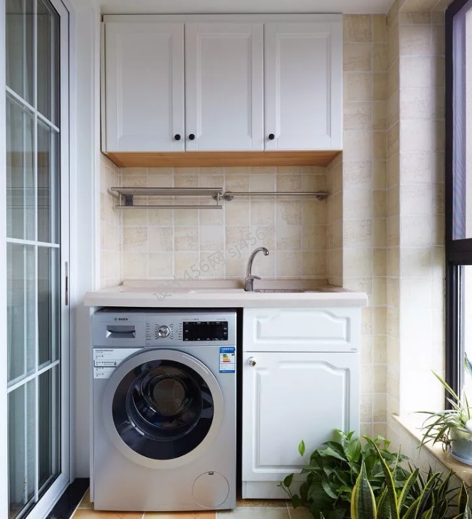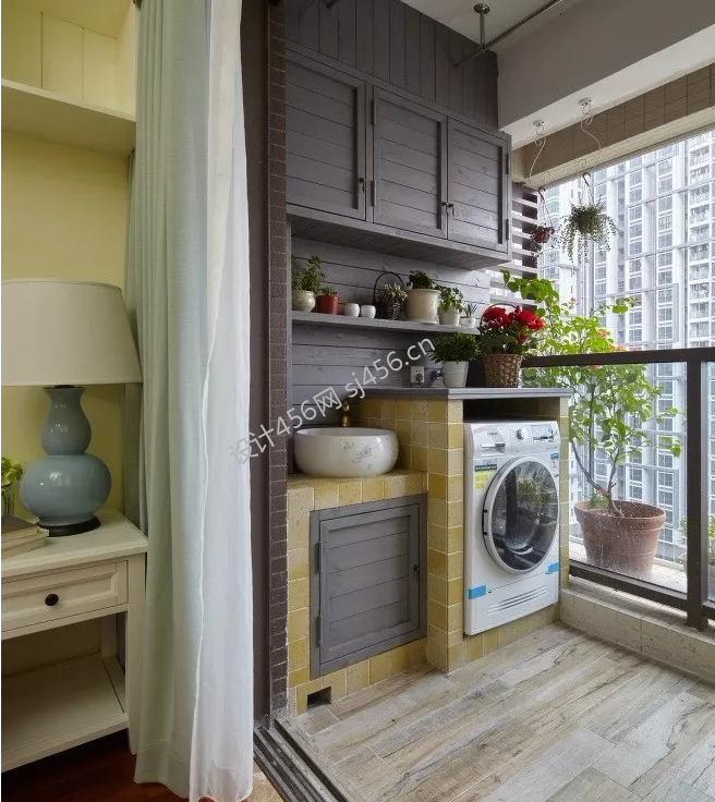 2020现代客厅阳台装修效果图 2020阳台洗衣机柜子装修效果图
