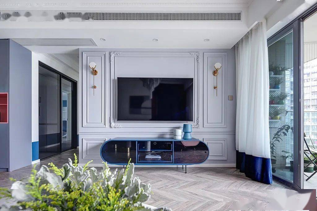 3、做满墙电视柜的时候不要装拉手,用反弹器,或者门板下挂一公尺,开放柜比柜门,2比8,加些开放柜更显轻盈,电视缕空区做成横向长方形能延伸空间,宽度不要超过1米2,如果超宽只能加钱做大板,或者做拼接,缝隙逼死强迫症。