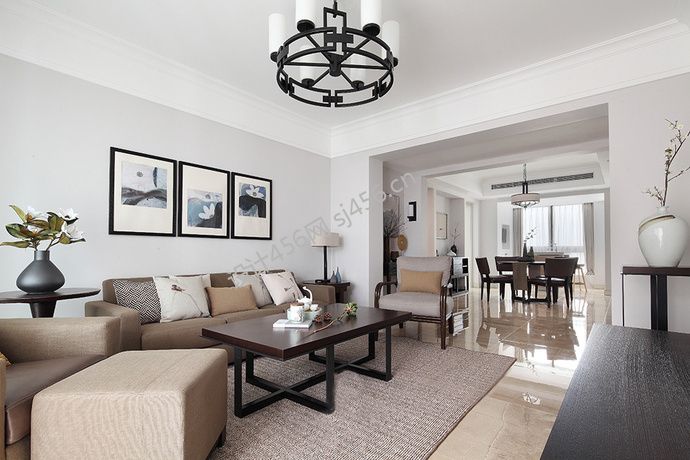 状元府邸130平米三居室现代风格沙发背景墙装修设计效果图