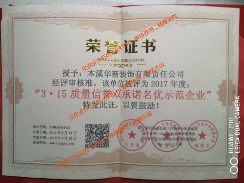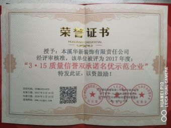 本溪华新装饰有限责任公司成立于2000年3月15日,3.15官网十二年零投诉企业,专业从事住宅·宾馆·酒店·商务楼·别墅·公寓等各类中高级建筑装饰工程和安装工程,公司具有建筑装修装饰工程专业承包三级资质、注册资本人民币200万元。公司拥有一批高、中级设计、施工、管理的专业技术人员和来自南方技艺精湛的能工巧匠,各类建筑装饰安装工程从设计、供料到施工,风格新颖独特,材质上乘可靠,工艺规范精良,并配有包括项目经理在内的一整套现场专职施工管理人员,层层把关,竣工后还提供完备的质量保修服务;多年来得到本溪地区新老客户的信赖和支持,目前在本溪高中低档小区内均有我公司实景房可参观,在本地装饰行业已具备一定的知名度和客户认知度;公司全体员工一直秉承“细节决定品质,责任决定生存”的服务理念,力所能及的为选择华新装饰的客户解除后顾之忧!客户满意才是我们的骄傲! ★ 三禁止: 1.客户要求尽量满足,超出范围的耐心解释,禁止和客户发生冲突。 2.禁止偷,拿,卡,要客户东西,损坏东西要照价赔偿。 3.预算一次到位,禁止通过主材提成的方式低价签单,让客户一次投资心中有数。 ★ 四一样: 1.工程造价高低,做工细致程度和服务一样。 2.客户在场不在场,施工质量一样。 3.表里做工一致,工程质量一样。 4.施工环境好坏,施工质量一样。 ★ 五满意: 1.方案满意:设计方案要有整体性,艺术性实用性,职业性。 2.价格满意:物有所值,合理安排资金少花钱,出好效果。 3.用料满意:购入的主要材料,经客户检验后,再投入使用。 4.质量满意:客户分阶段验收,不偷工减料。 5.服务满意:维修随叫随安排,保修两年,无后顾之忧。 ★ 在设计初期: 我们的设计师在为您做方案时,如果您对设计师的态度或方案不满意,您可以要求公司为您更换设计师。 ★ 在签订合同方面: 合同里有补充协议一项,您有权列出你需要修改的条款,也有权在对我们施工及处理态度不满意时解除合同。 ★ 在施工质量方面: 在施工过程中,您有权对我们的施工质量,工艺做法,工地卫生,文明施工等方面进行监督。发现有与标 准不符时,您有权要求停止施工。修改后达到标准方可进行施工,工期不顺延。 ★ 为您服务方面: 在施工过程中,您认为施工监理,设计师及每个工种工人对您的态度及服务不满意,您有权要求公司立刻 更换此人,再安排其他人为您家服务。 ★ 在售后服务上: 工程验收后,使用中您若发现有质量问题,您有可以随时要求公司安排维修人员对您的工程进行维修; 华新装饰郑重承诺:每年两次免费上门维护!