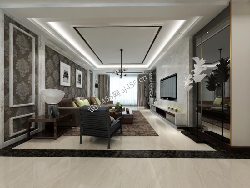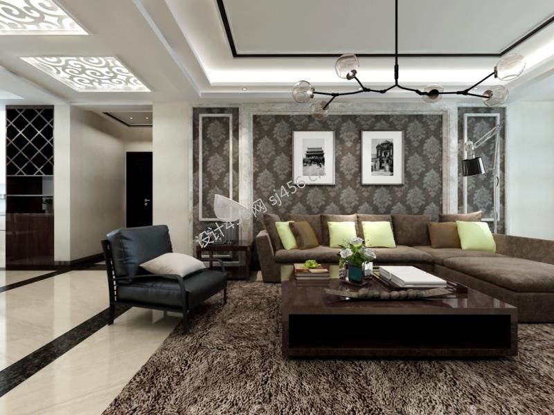 详情客厅现代风格壁纸背景墙装修效果图