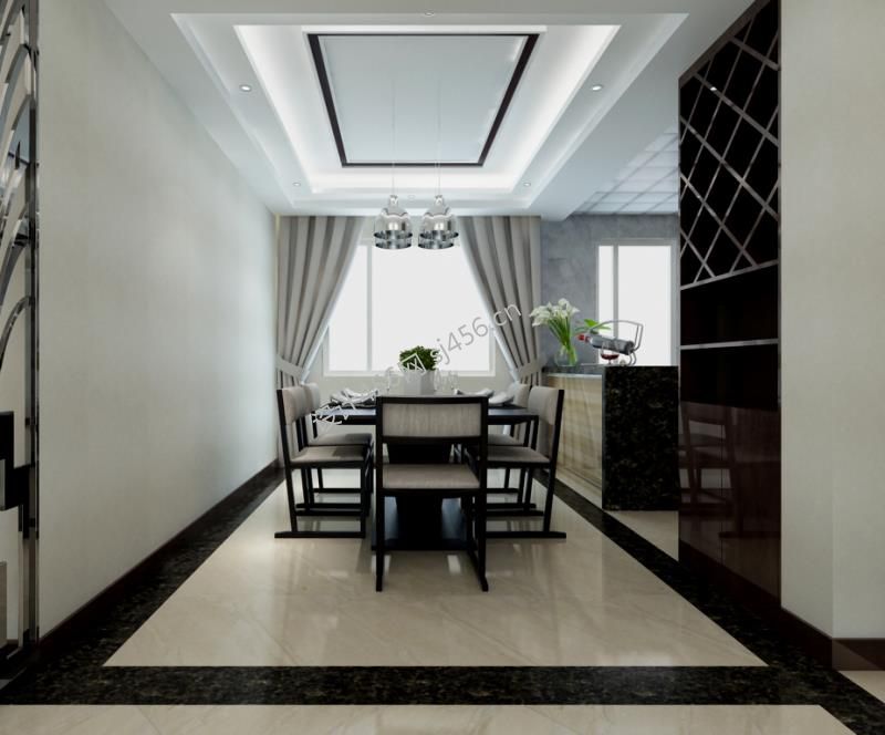 房子餐厅简约布艺窗帘装修效果图片