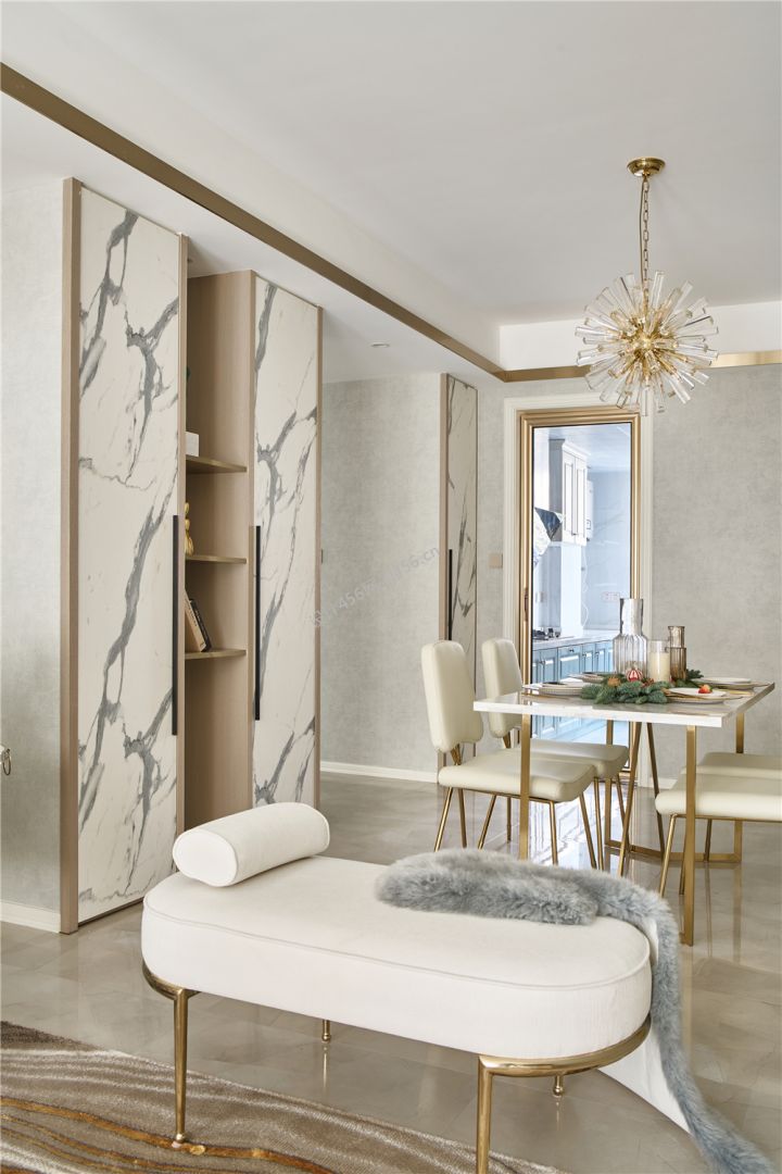 轻奢风格124平米三室两厅餐厅装修效果图