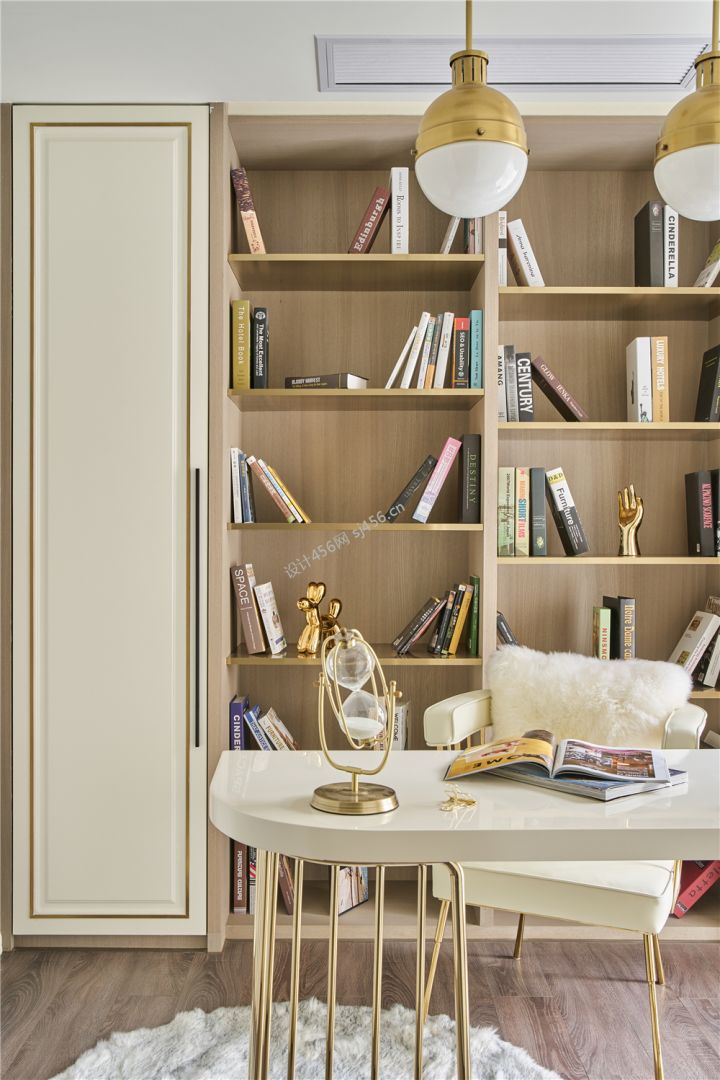轻奢风格124平米三室两厅书房装修效果图