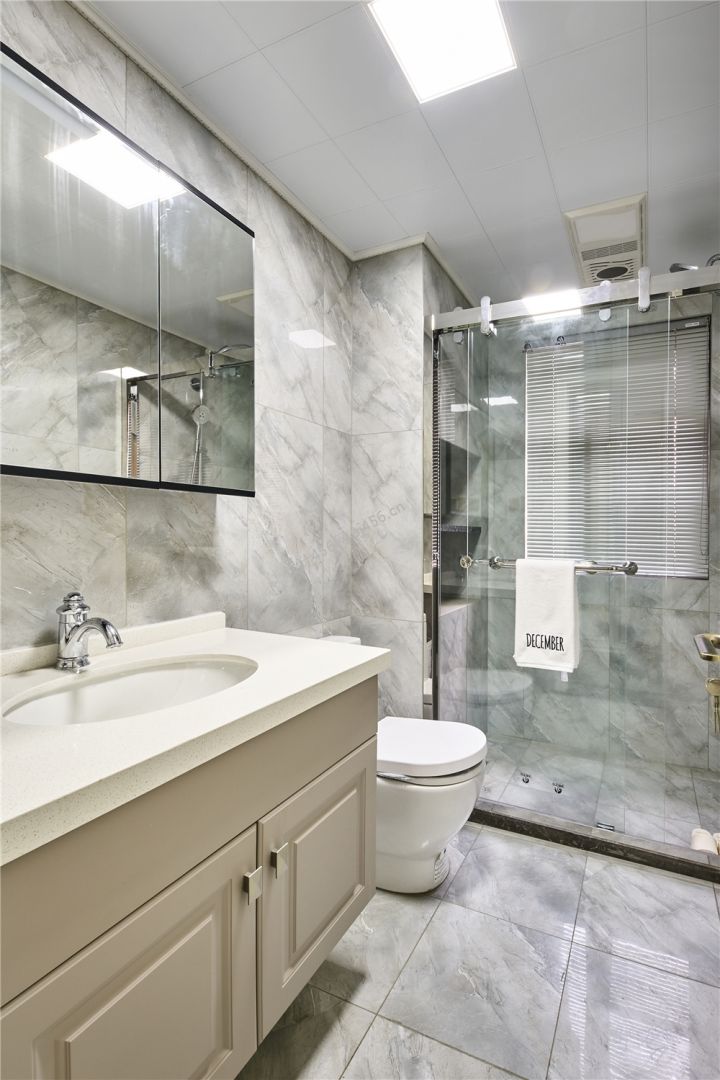 轻奢风格124平米三室两厅卫生间装修效果图