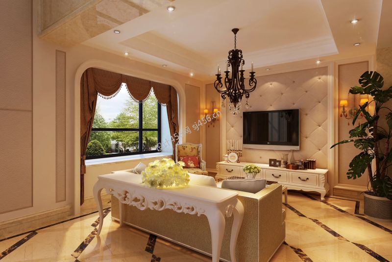 欧式风格290平米别墅客厅电视墙装修效果图