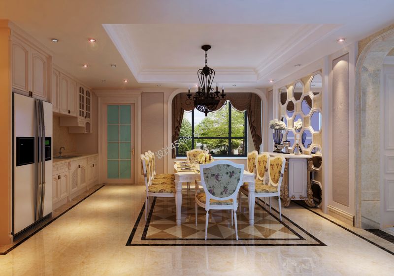 欧式风格290平米别墅餐厅吊灯装修效果图