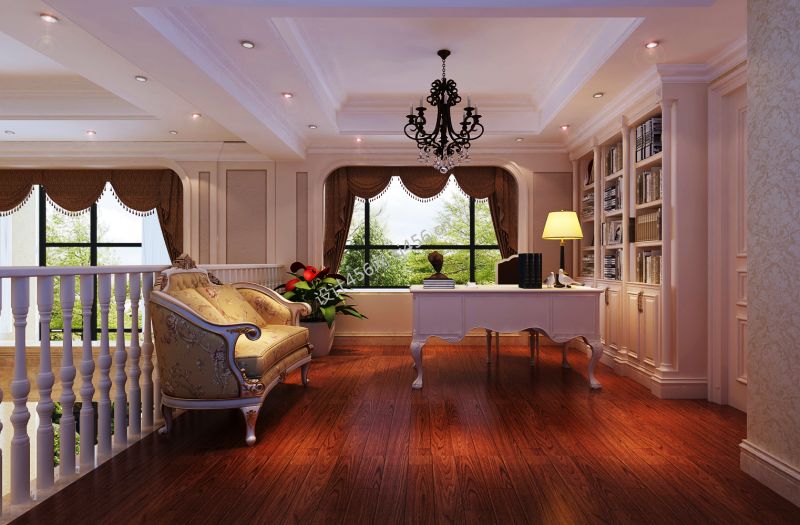 欧式风格290平米别墅书房书柜装修效果图