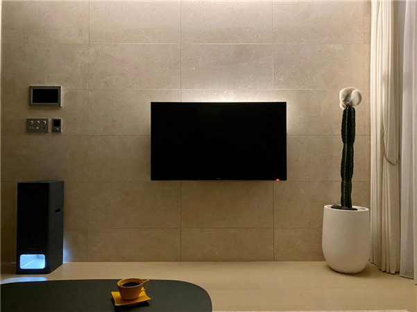 电视墙还是之前铺贴好的墙砖,现在只是挂上电视机就能多出些家居观影的仪式感。