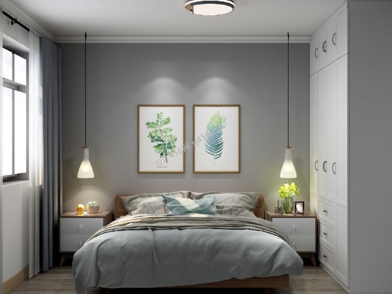 北欧风格96平三居室卧室墙面颜色装修设计图