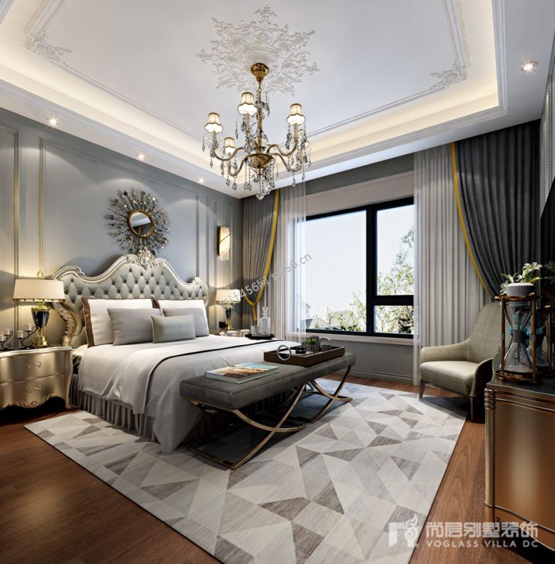 鲁能7号院345㎡欧式风格别墅卧室装修案例