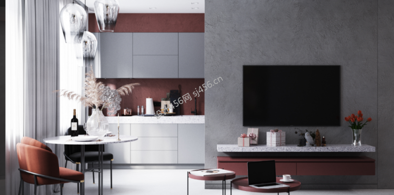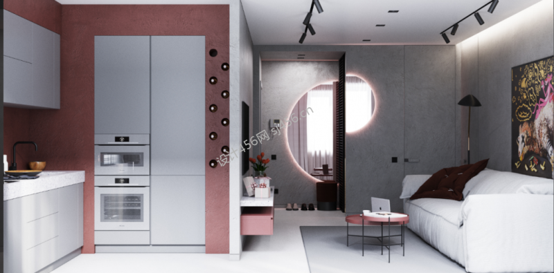 50平米一居室公寓工业风格客厅餐厅厨房效果图