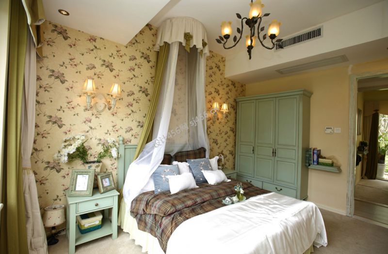 田园风格145平米三室两厅卧室装修效果图