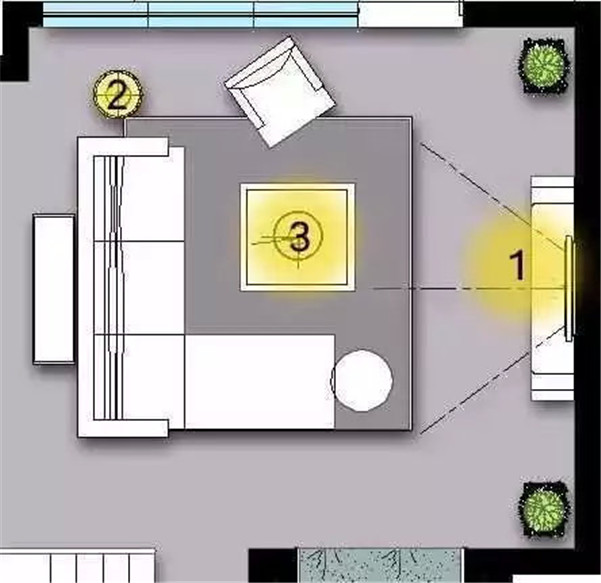 3.茶几上的光源用于功能照明(但大多家庭会在茶几上方安装吊灯作为主光源)