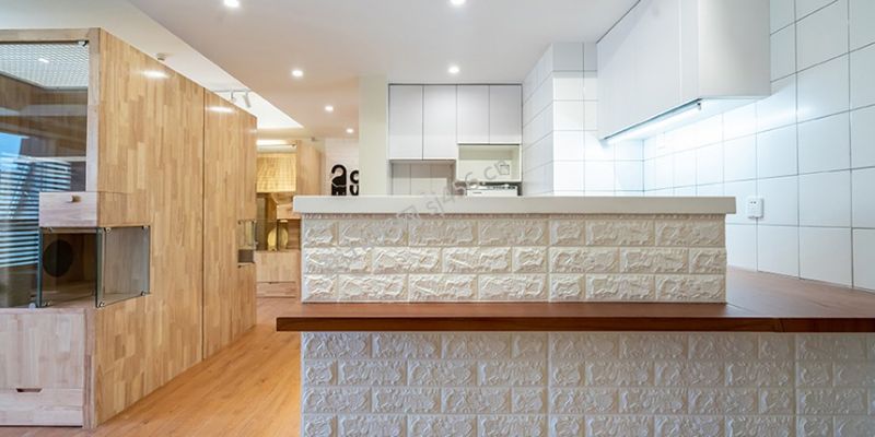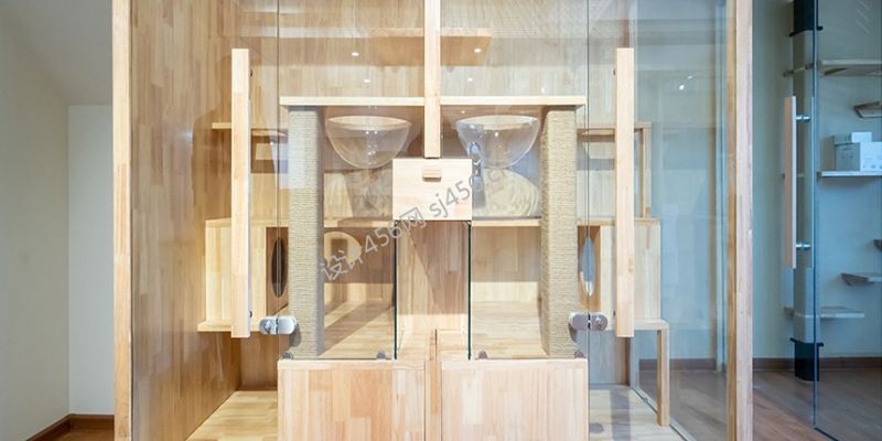 设计理念: 原始一层与二层是一个相对规整的室内环境,墙面斑驳,不适合猫咪的长期生活。改造后,在一层和二层之间置入很多爬梯,同时在墙面设置大量的猫窝和猫爬架,供猫咪嬉戏玩耍。从入口的门框到墙壁的灯饰到猫咪的爬架和猫窝的设计,始终保持室内完整的猫屋形象。考虑到耐久性能,使用橡胶木板材作为统一的室内装饰材料。猫作为空间的主体,所以整个设计以猫咪为起点。墙面的爬架和圆形猫洞也成为空间的特色,有安全感的屋形猫窝也为主子们创造了飞檐走壁的可能性。设计出能让猫咪舒适度最大化的空间是inDeco设计的初衷 原始一层与二层是一个相对规整的室内环境,墙面斑驳,不适合猫咪的长期生活。改造后,在一层和二层之间置入很多爬梯,同时在墙面设置大量的猫窝和猫爬架,供猫咪嬉戏玩耍。从入口的门框到墙壁的灯饰到猫咪的爬架和猫窝的设计,始终保持室内完整的猫屋形象。考虑到耐久性能,使用橡胶木板材作为统一的室内装饰材料。猫作为空间的主体,所以整个设计以猫咪为起点。墙面的爬架和圆形猫洞也成为空间的特色,有安全感的屋形猫窝也为主子们创造了飞檐走壁的可能性。设计出能让猫咪舒适度最大化的空间是inDeco设计的初衷