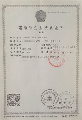 北京雅联达装饰工程有限公司是从事室内外装饰装修设计与施工的专业公司,长期承接办公室、餐厅、会所、酒店、养老院、厂房改造、店铺(拉面馆、火锅店、美容院、美发店、典当行、理财投资店、手机店)等室内外装饰装修及设计工程。 我公司拥有独立的设计研究院,拥有一批现代办公设备及先进设计软件,拥有一批涵盖建筑、结构、水电、暖通、弱电、装饰等专业的,有着丰富设计经验的中高级设计师,十年来本着人性化、专业化的设计原则,先后承担了多项建筑工程装修装饰的设计工作。 我公司竭诚为广大客户提供设计及施工、工程造价分析与预算和工程管理与监理等完善的综合性服务。 我们以全新的国际化经营理念和精深的设计功底及精益求精的施工水平为先导,以完善的服务体系和专业的技术团队为基础,运用其专业的角度及功力,认真负责地处理每个空间,努力不断地为客户提供全面细致的服务,让广大客户得到最优秀的设计、最优美的环境和最优质的服务。 我公司所有员工齐心协力,朝气蓬勃,在科学的管理运作之下,公司上下始终沿着高效、协调、有序的方向发展。 我公司自成立以来一直坚持以集团化运作,集约化发展,精益化管理,标准化施工的经营策略;秉承“以质量求生存,以信誉求发展”的经营理念,以时尚,环保,和谐为设计核心;强化公司专业化,人性化,个性化的经营特色;竭诚为社会各界朋友提供“放心,省心,舒心”的一站式完美服务;让“雅联达”品牌更加辉煌!