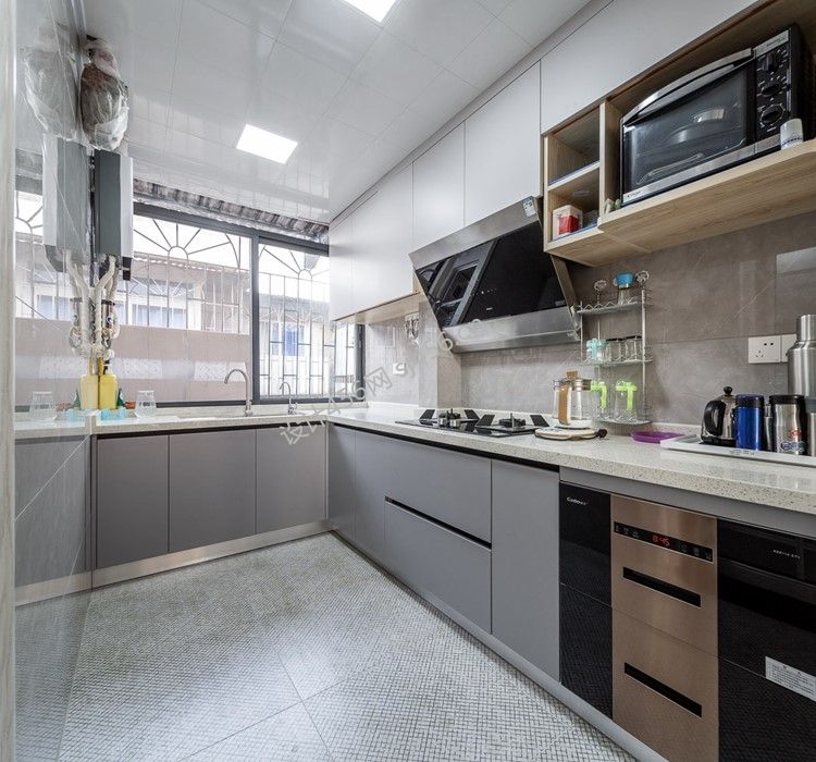 现代风格103平米三居室厨房橱柜装修效果图