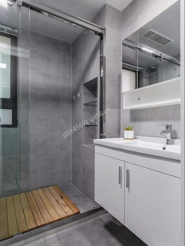 现代风格117平三居卫生间洗手台装修设计图片