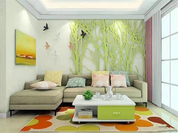 3D立体画:客厅能成为一道风景线?将墙面设计成裸砖的形式,然后用3D的立体花进行装饰,就可以永远将春天留在家里啦。
