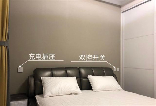 床头的开关和插座,要按照床头来布置距离。能安装双控的是最好,不装双控的那就安装智能的吸顶灯,这样就不用下床关灯了。