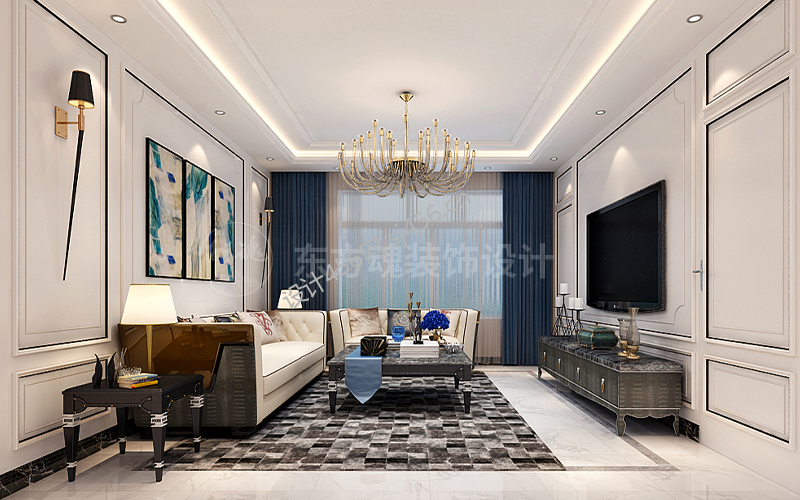 223平混搭中式风格别墅客厅背景墙装修设计图