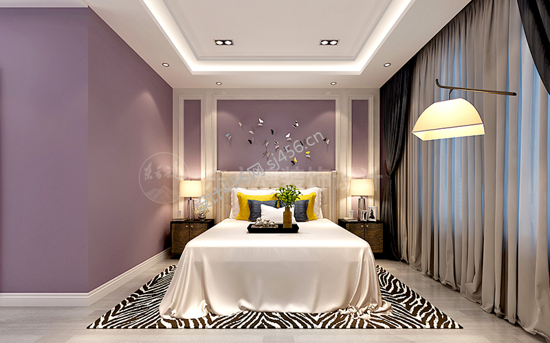 223平混搭中式风格别墅卧室背景墙装修效果图