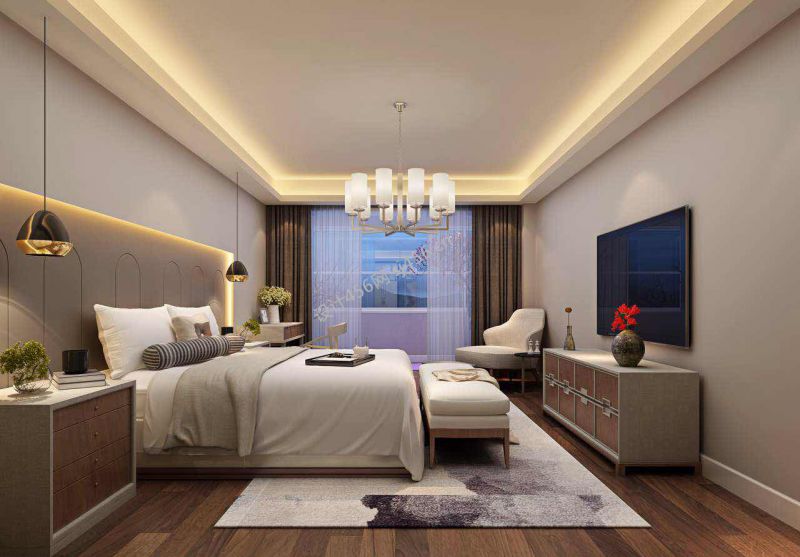 现代风格135平米三居室卧室吊顶装修设计图