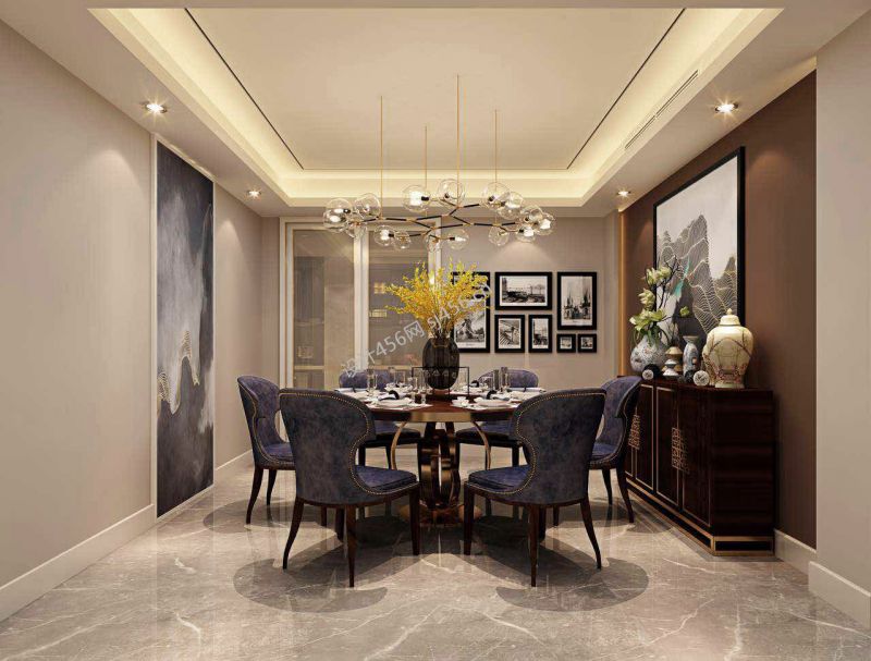 现代风格135平米三居室餐厅餐桌装修设计图