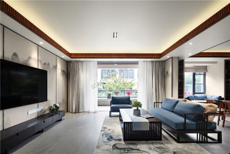现代中式风148平米三室两厅客厅装修效果图欣赏