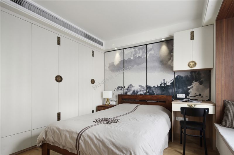 现代中式风148平米三室两厅卧室衣柜装修效果图欣赏